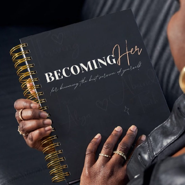 Our Becoming Her Undated Planner is a beautifully designed and empowering personal organizer with over 400 pages, created to help women on their journey of self discovery and personal growth.